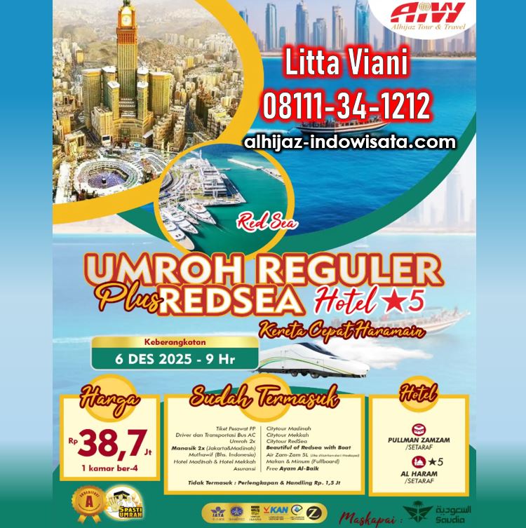 UMROH REGULER REDSEA KERETA CEPAT HARGA MULAI 32,5 JUTA 9 HARI JANUARI 2026