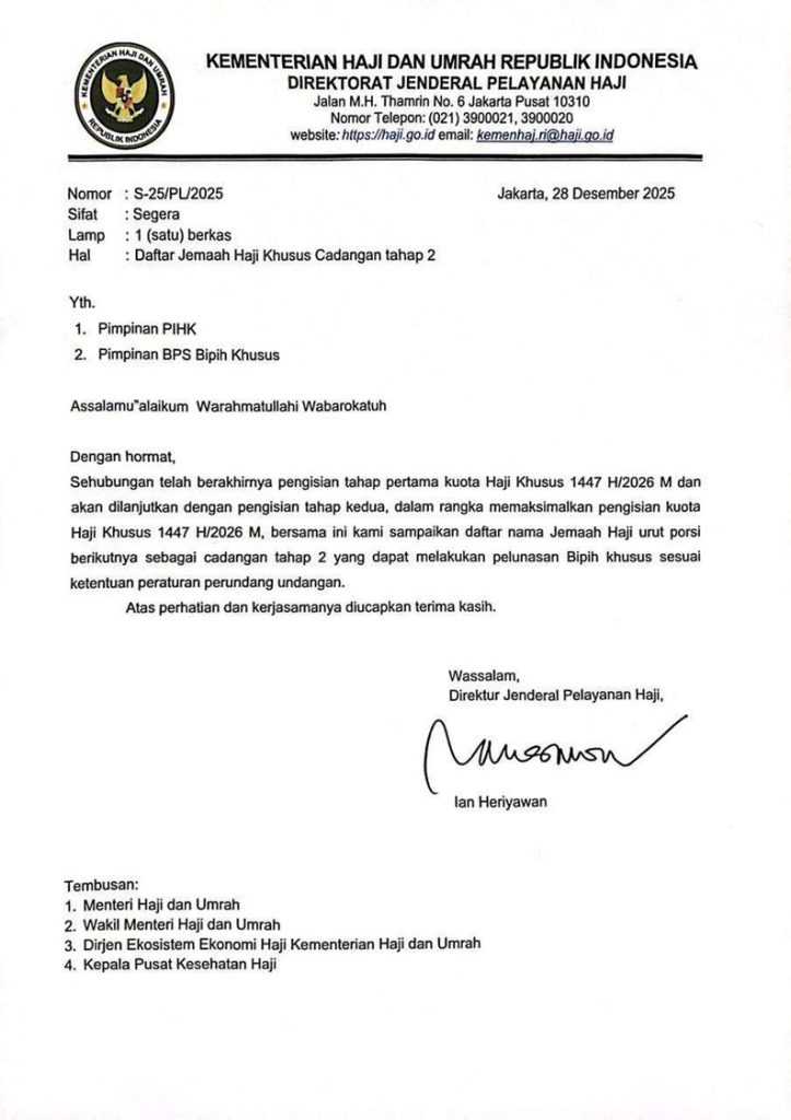 Pemerintah melalui Kementerian Agama (Kemenag) resmi mengumumkan daftar jemaah haji khusus Tahap 2 yang berhak melakukan pelunasan biaya haji. Pengumuman ini menjadi kabar penting bagi calon jemaah yang sebelumnya belum masuk dalam kuota pelunasan tahap pertama.